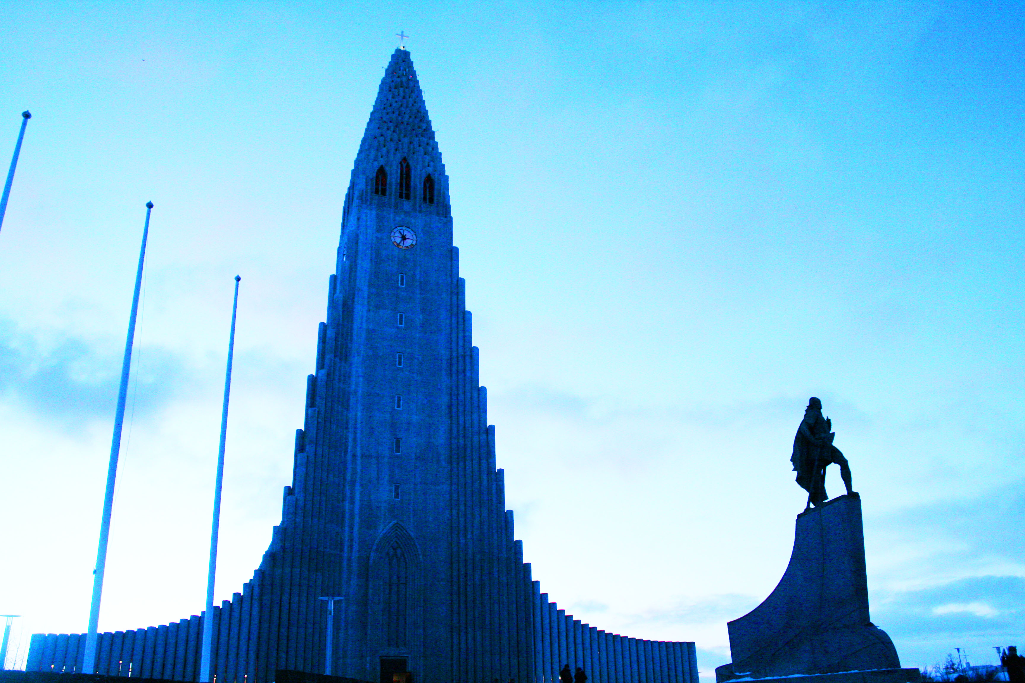 Layered in cloth and hoods up I set out for the church steeple before breakfast, before sunrise. I run and await the steeple elevator which will lift me 8 floors up into the sky- a religious derivative of Buddhism? I stepped into a square chamber with one huge glass clock on each wall. Peering through the condensed dripping glass I could hear the wind swirling around the tower (chamber) and I was awe struck at the long un-interrupted vast views of the city and beyond. To the mountains and to the sea and to the mountains and into the clouds. Gazing at the dazzling city bejeweled with multi-coloured twinkles I felt strongly connected with the northern and eastern clocks- in most places around the earth these directions represent light freedom in my heart. The sun was rising in a south-easterly direction, with beautiful rainbows erupting from around the distant mountain peaks and illuminating the most righteous, prominent, specs of Reykjavik’s architecture. I paid homage to NORTH, EAST, SOUTH AND lastly WEST where the crescent moon shone like a blissful guide into the night-time, again yet to begin reining in just 6 hours.