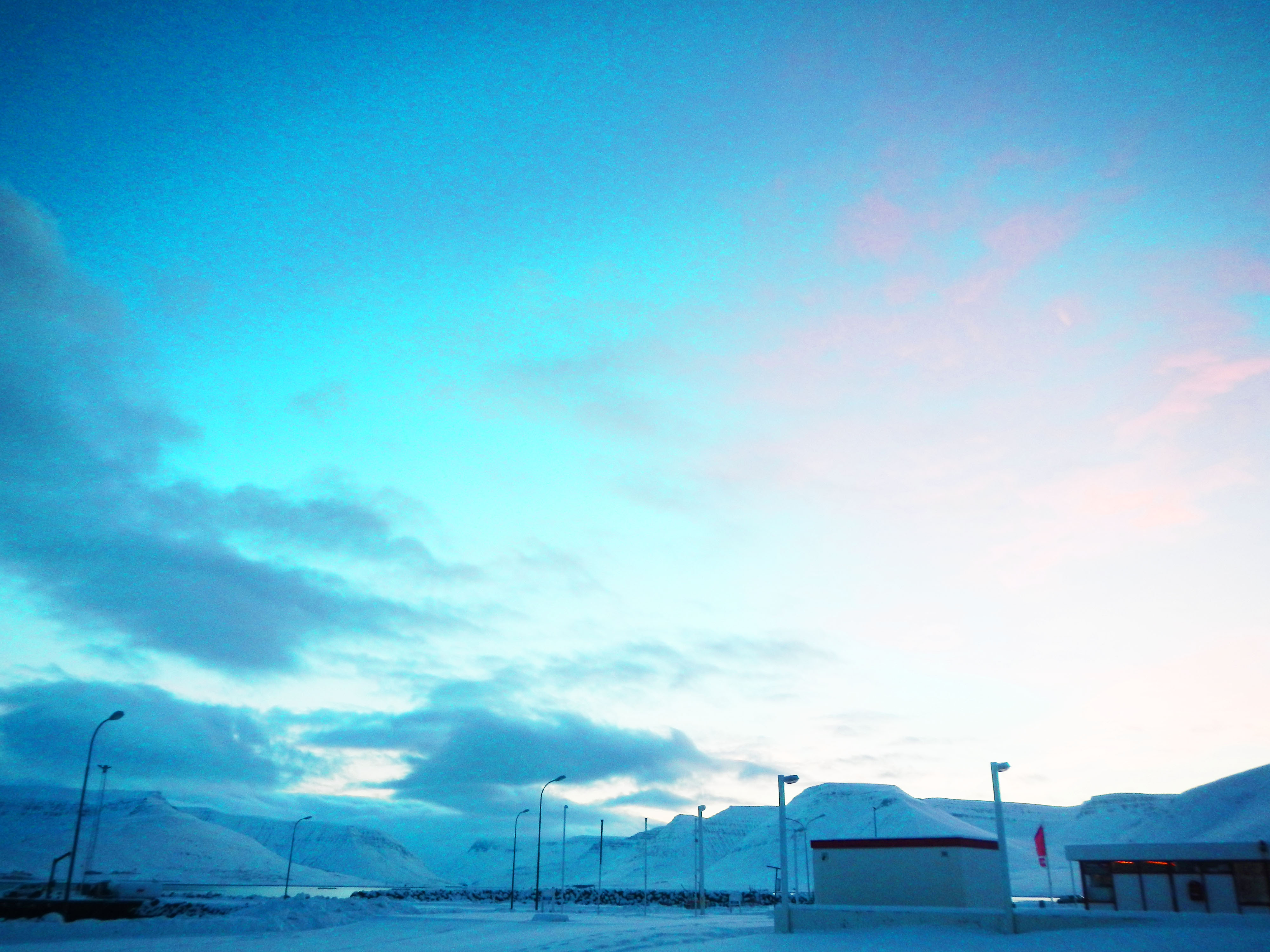 ABOVE THE MOUNTAIN PEAKS SURROUNDING THE VILLAGE THE SUN HAD COME UP! PINGEYRI SAW THE SUN AND I FELT IT FOR THE FIRST TIME SINCE ARRIVING HERE, MY HEART SOARED, I CHOKED WITH TEARS AND I WAS FILLED WITH ELATED GLORY AT THE LIFE OMMITING ORB WHICH SHONE MORE BRIGHTLY THAN I COULD HAVE REMEMBERED. That reality was striking and I felt like I must have conveniently, optimistically forgotten what real full-frontal sunrays felt and looked like. In the minus winds the light pulsated hope and (although not much,) warmth and the confirmation that relaxation and natural peace will come and now can begin to fill our beings with energy. Out of hibernation and in to the universal community where humans and animals, the elements, the sky, the fjord and its water creatures, the more simple to access mountains, paths, bridal ways and roads can all interact with more equality than in the winter months when artic winds and sharp sheets of snow have been blowing us inside houses and the lullaby of darkness has been whispering uncertainty and surreal melancholy into our bedrooms, shhhhshing us to lie dormant for longer than we really wish. The sun appeared and it was fantastic!