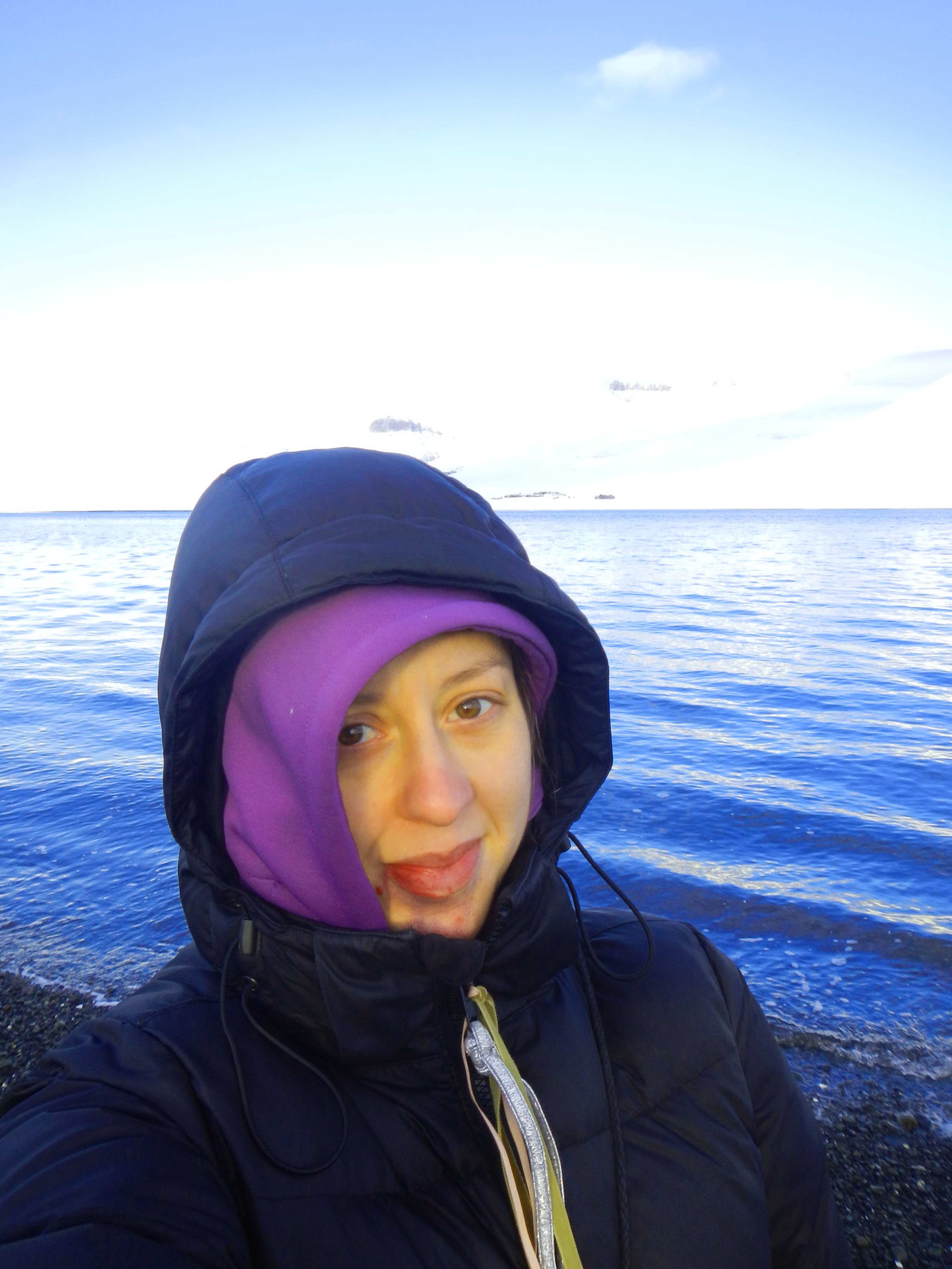 A sunset recci and exploration to gauge my whereabouts- really upon an ISLE OF ICE! The sea and white shapes are ALL AROUND! I found the warm glowing orb-like space ship church and I discovered the degree of wind chill and northern temperature. Tomorrow I will wear double trousers and a wrap of protection pour le visage- the edges of my lips are cracked already. Onwards now to find dinner and warmth and draw and write and then to snuggle into dreams!