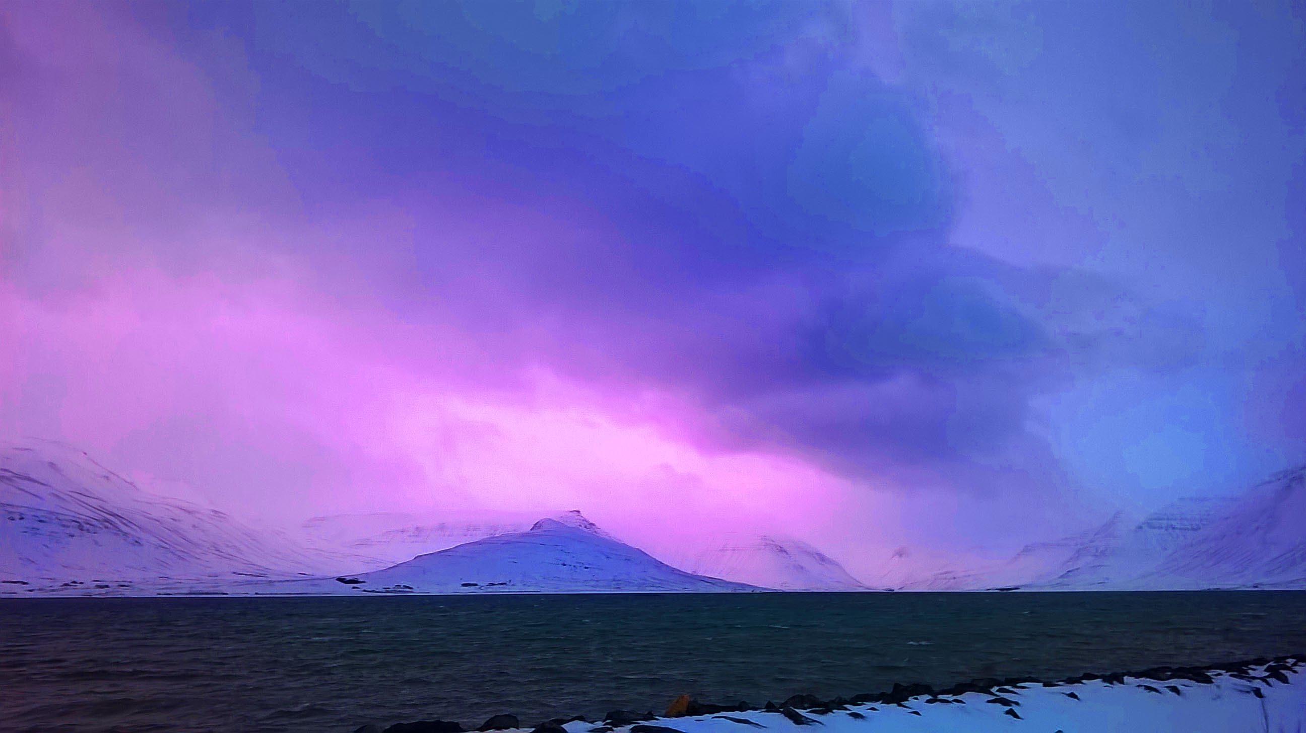 Through the dark morning night black sky and thick sleety snow in sheets to Isafjordur, the Landsbankin and then on to the road for our descent down the Island to Reykjavik.