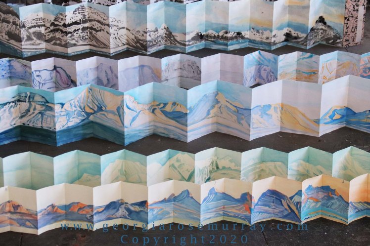 Four new concertina Sketchbook paintings created which capture Sunrise in Ny Alesund and Longyearbyen.