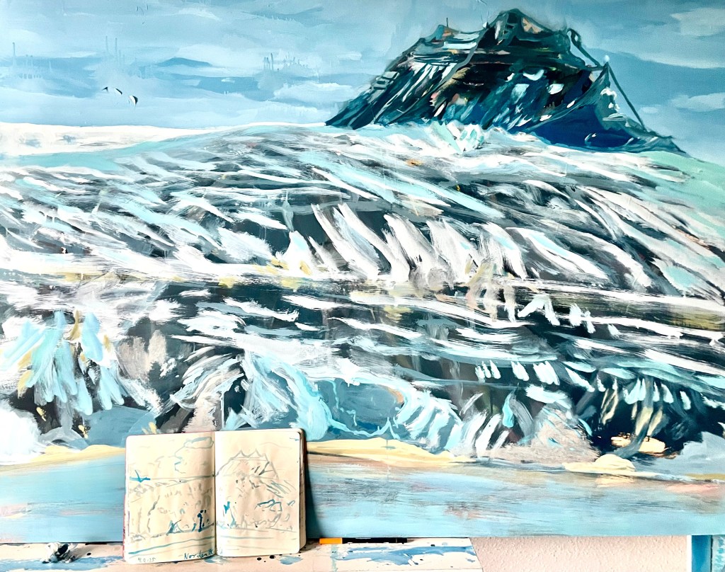 Since landing in my new painting home, I’ve dedicated most days and lots of night-times whilst dreaming, (then waking to make notes in sketchbooks), to beginning a new body of work, which will hopefully communicate some of the grief and magic, which I experienced in the Arctic landscape.