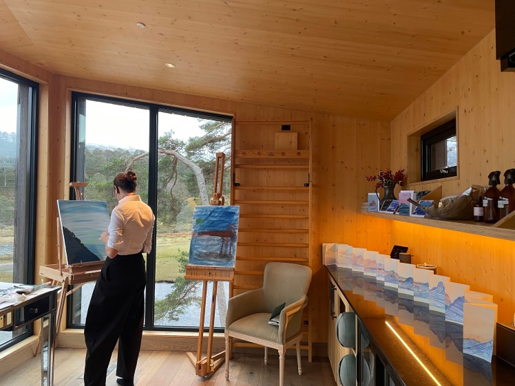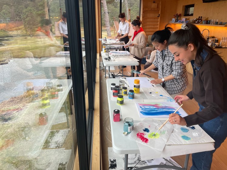 Spending time in Glen Affric is always balm for the soul and it was amazing to be invited to facilitate a painting workshop right in the heart of the Glen. With floor to ceiling glass over looking the loch, snow dusted mountains and powerful Pine trees, the studio was idyllic!