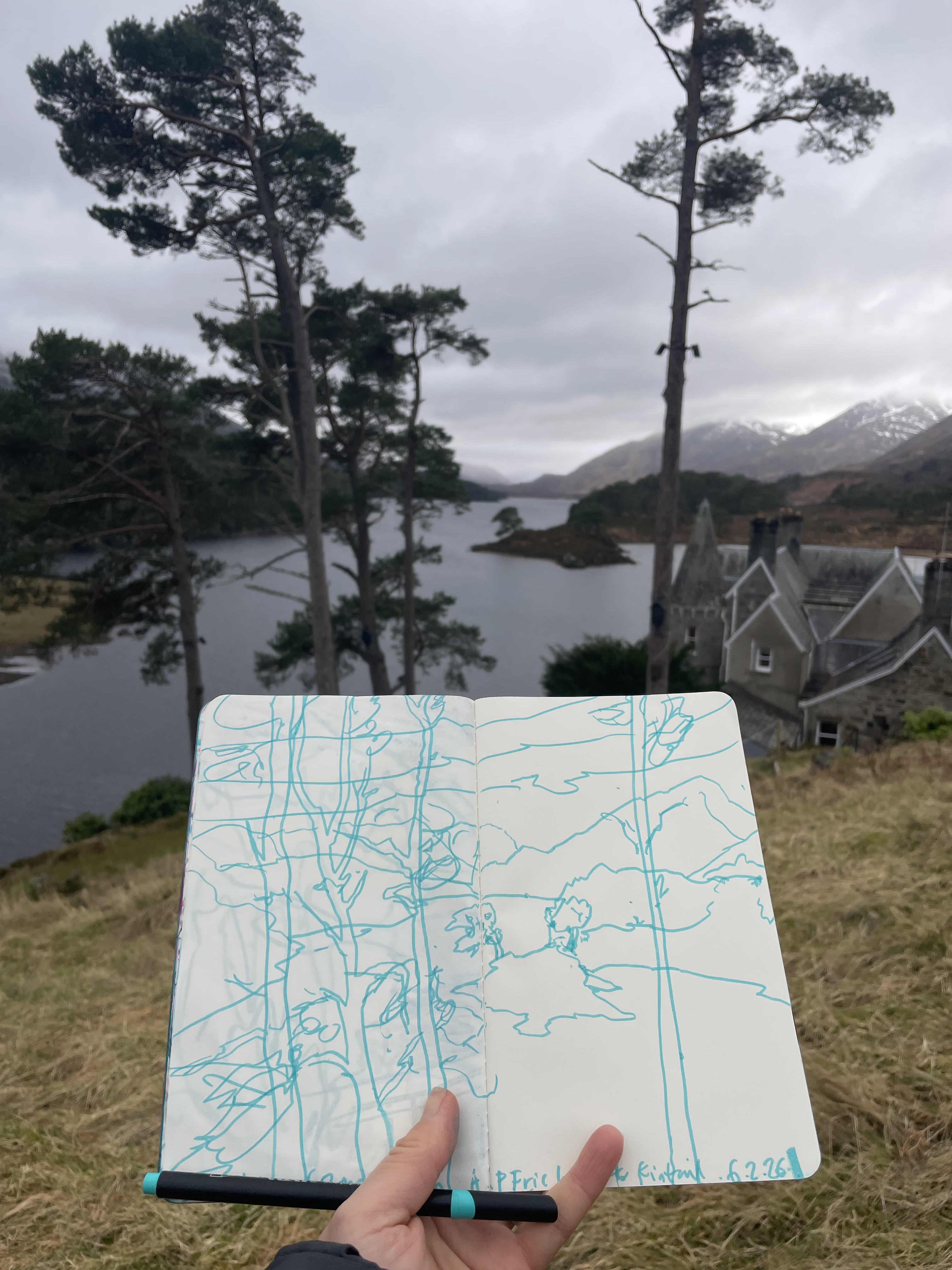 Spending time in Glen Affric is always balm for the soul and it was amazing to be invited to facilitate a painting workshop right in the heart of the Glen. With floor to ceiling glass over looking the loch, snow dusted mountains and powerful Pine trees, the studio was idyllic!