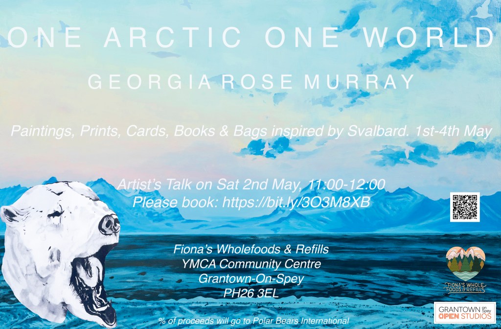Exhibition & Artist’s Talk in Grantown-On-Spey, 2nd May Posted on March 27, 2026March 27, 2026 by georgiarosemoonlight Copy and paste the web address on the poster Scan the QR code or Follow the link below to book Artist’s Talk: https://www.eventbrite.co.uk/e/georgia-rose-murray-arctic-research-talk-tickets-1985370250865?aff=ebdsoporgprofile Like Loading... Related