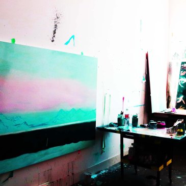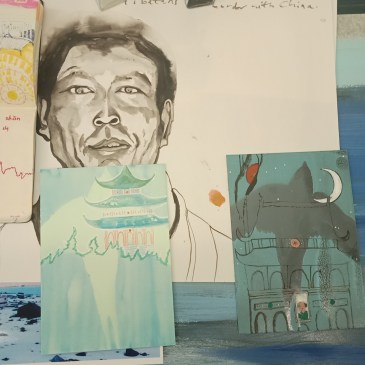 China Arctic Scottish studio now. Dissident. GRM. 2018-2019 (Nancy Spero 1960’s ‘Dissidances’). 22:00 1st of October 2019. 365 days since we set sail on The Arctic Ocean. Tonight I cycled through Dundee at sunset. A tiny thin silver golden crescent surrounded by glowing ember fire Tiger stripes against darkening blue distance. Freezing hands, first low … More a FULL CIRCLE. THE LANDSCAPE: Arctic Shaman